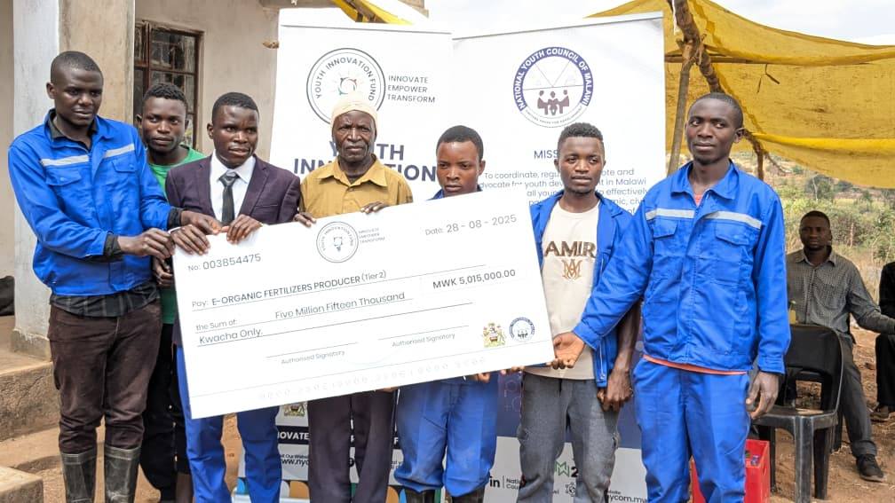 The National Youth Council of Malawi today was in Rumphi District to present the a Youth Innovation Fund cheque to the E-Organic Fertilizer Producers, a dynamic youth-led cooperative based at Mchenachena trading centre.